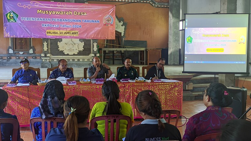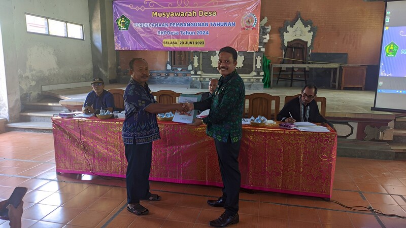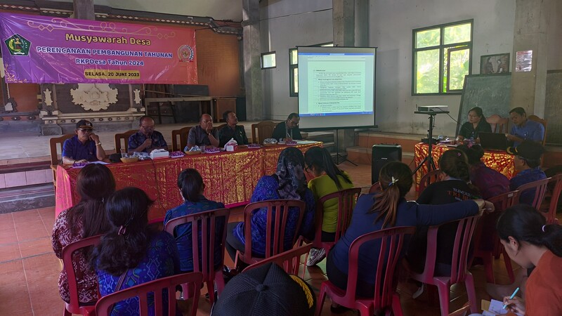 Pada Hari Selasa, 20 Juni 2023, di Gedung PAUD Desa Pulukan. -- Telah diselenggarakan Musyawarah Desa (MusDes) Perencanaan Pembangunan Tahunan RKPDesa 2024 pada pukul 09.00 WITA. Acara ini dihadiri oleh perwakilan pemerintah kecamatan, tokoh masyarakat, lembaga kemasyarakatan, BUMDesa, perwakilan masyarakat kurang mampu, serta pihak terkait lainnya.