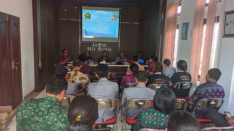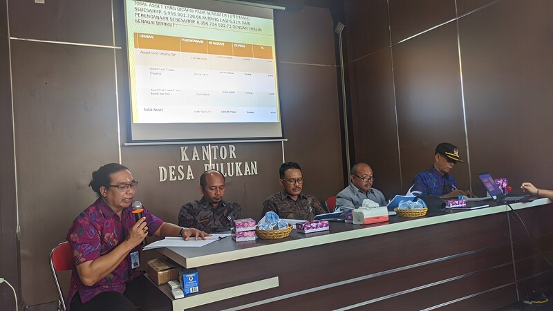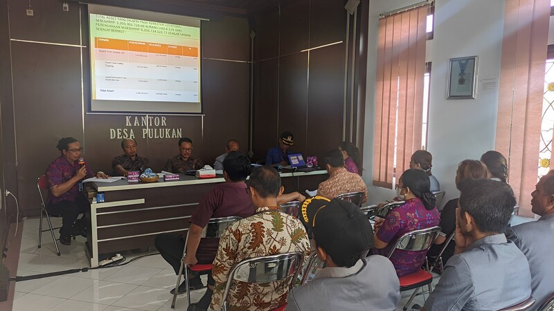Pulukan, Selasa 25 Juli 2023 - Ruang Rapat Kantor Perbekel Pulukan, digelar Musyawarah Desa untuk menyampaikan laporan dari Badan Usaha Milik Desa (BUMDesa) Tri Buana pada Semester I Tahun 2023. Acara ini dipimpin oleh Ketua Badan Permusyawaratan Desa Pulukan (Suherman) dan dihadiri oleh narasumber dari Kecamatan Pekutatan, yaitu Kasi PMD Kecamatan Pekutatan dan Pendamping Desa Kecamatan Pekutatan.