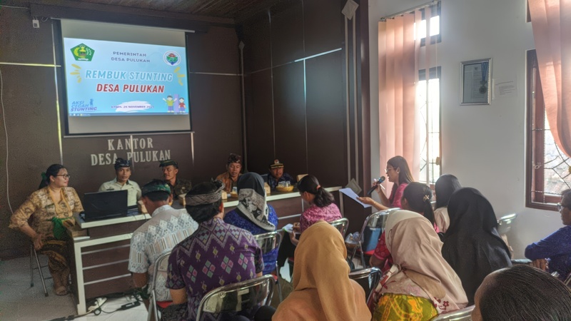 Dalam arahannya, Perbekel Pulukan menekankan pentingnya menurunkan angka stunting dimulai dari keluarga melalui pola asuh yang benar. Pemerintah Desa Pulukan berkomitmen untuk mendukung upaya ini melalui penganggaran di APBDesa. Berdasarkan laporan KPM Desa Pulukan, jumlah balita stunting di desa saat ini tercatat sebanyak 17 orang, dengan tambahan 4 balita mengalami berat badan kurang dan 4 balita lainnya mengalami gizi kurang. Selain itu, dari 30 ibu hamil, terdapat 4 ibu hamil dengan kondisi kekurangan energi kronis (KEK), 8 dengan risiko usia, 2 dengan risiko jarak kehamilan, dan 1 dengan risiko anemia.