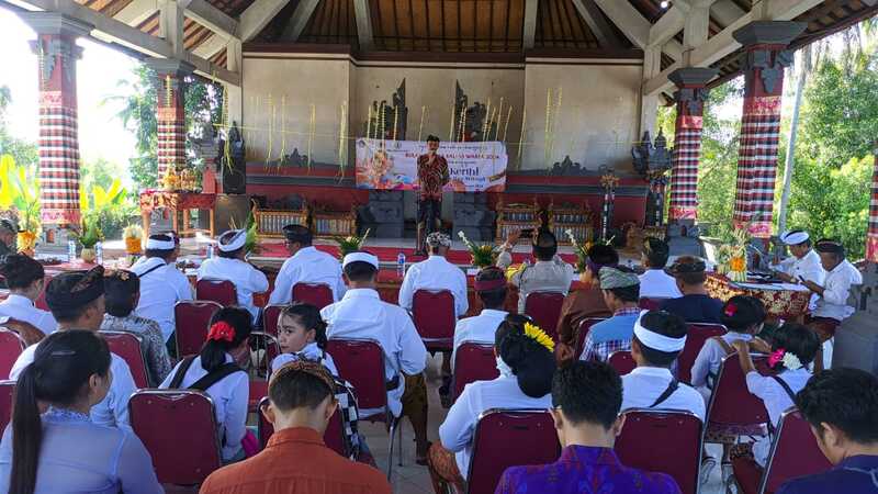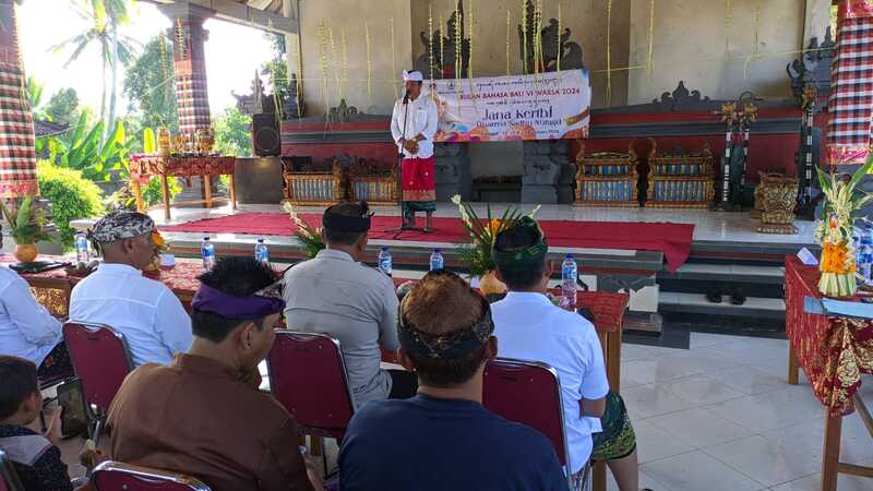 Pulukan, 21 Pebruari 2024 - Wantilan Desa Adat Pulukan menjadi tempat berlangsungnya kegiatan Bulan Bahasa Bali VI Warsa 2024. Acara ini mengangkat tema 'Jana Kerthi Dharma Sadhu Nuraga' yang artinya Bulan Bahasa Bali merupakan altar pemuliaan Bahasa, Aksara, dan Sastra Bali, sebagai sumber kebenaran, kebijaksanaan, dan cinta kasih untuk memperkuat jati diri Krama Bali.